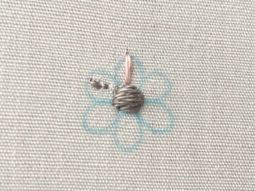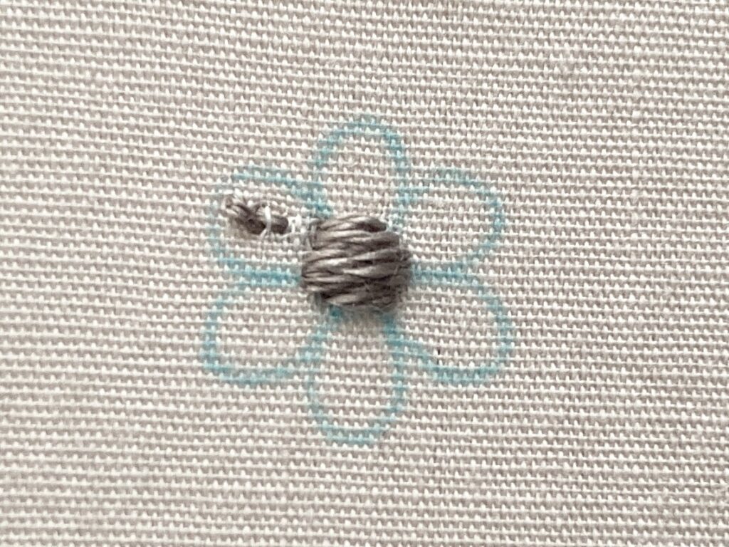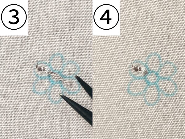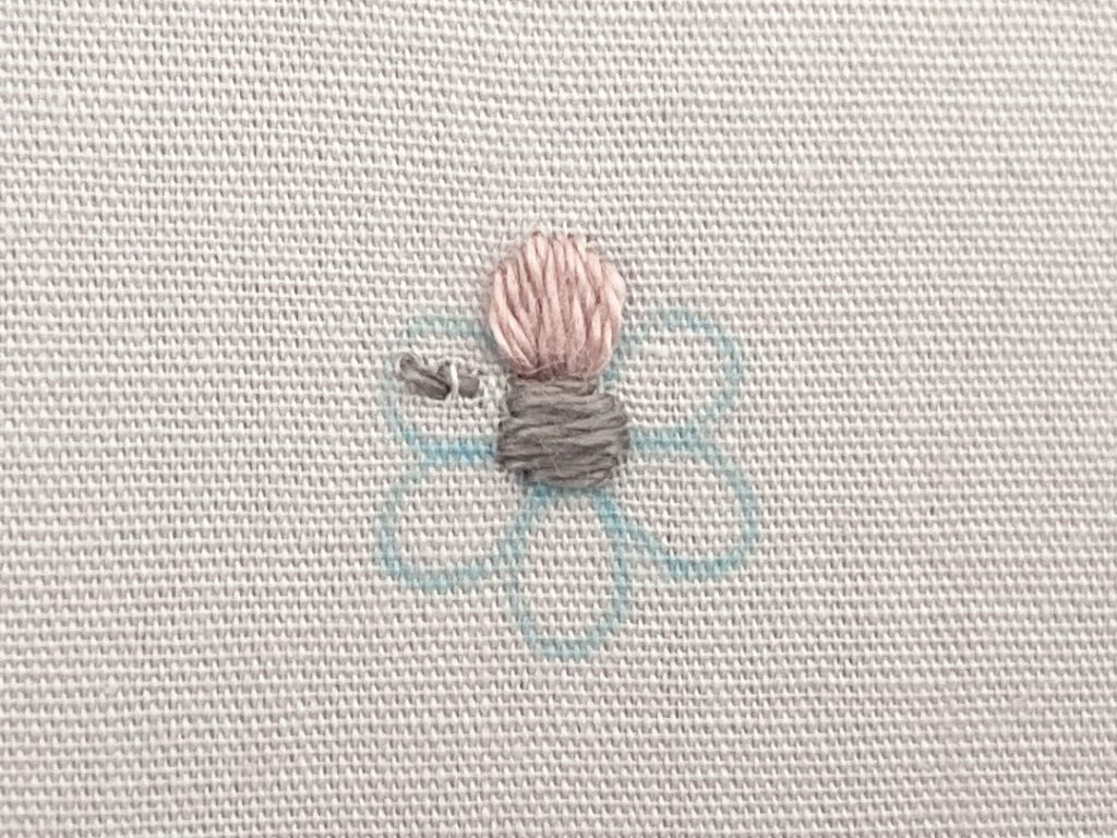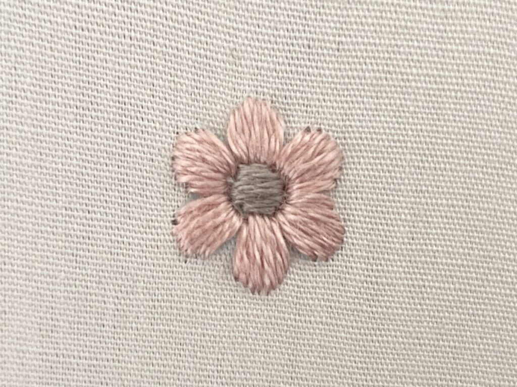 花の中心をサテンステッチで刺します。